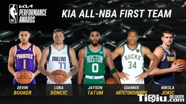 一阵为:德文-布克(太阳)、卢卡-东契奇(独行侠)、杰森-塔图姆(凯尔特人)、字母哥(雄鹿)、尼古拉-约基奇(掘金);