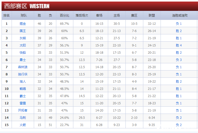 西部排名前4的球队分别是掘金、国王、灰熊和太阳,这4支球队的战绩排名很稳定,基本上已经上岸了,不用为季后赛名额而担忧。掘金队取得46胜20负的战绩,已经领先西部第6的勇士12.5个胜场,即便接下来掘金全输了,进入季后赛也没太大问题,约基奇应该会轮休,掘金队拿到西部榜首没悬念。