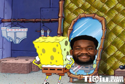 赛后,美国更是晒出一张图片嘲讽艾顿在本轮系列赛中的表现,图片中是美国经典动画海绵宝宝照镜子,讽刺艾顿像海绵一样软。
