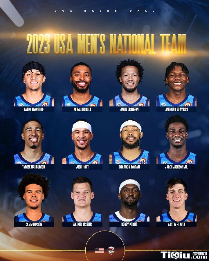 NBA 时间:2023-07-07 12:03来源:编辑:雨后的微笑北京时间7月7日,美国男篮已经凑齐了一支队伍,就在今日,美国男篮官方公布了本届国际男篮世界杯的12人大名单。这12名球员,除了波蒂斯年纪比较大以外,其他人基本上都是30岁以下的年轻球员。并且这12名球员全部是第一次代表美国队参战男篮世界杯。