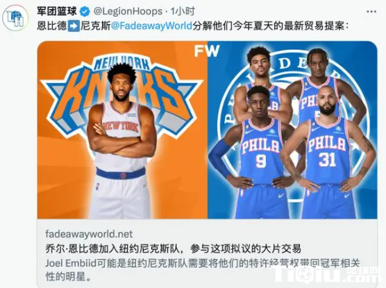 76人大交易送出恩比德 得到尼克斯三将五首轮