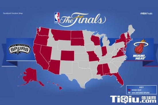facebook调查结果(红色代表热火,灰色代表马刺)