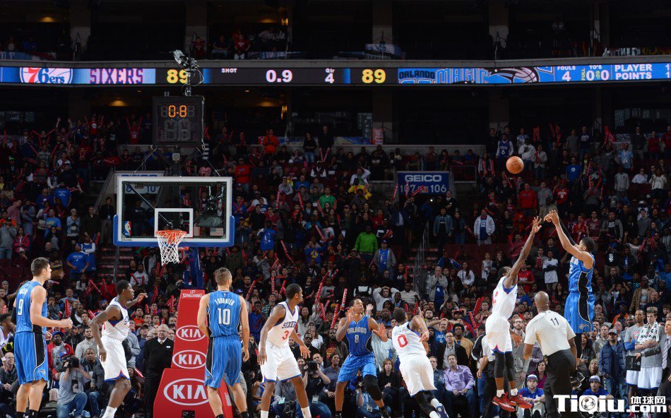 两队相继投篮不中后,在比赛还有4.9秒时,希姆斯中投命中,76人将比分扳成89-89。暂停后,哈里斯接福尼尔传球,在右侧后撤步投篮命中,球进铃响,魔术惊险过关。