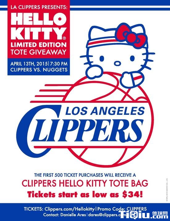 NBA 时间:2015-03-27 10:36来源:未知编辑:初尘【导读】北京时间3月27日消息 近日,快船队和Hello Kitty(凯蒂猫)合作促销球票回馈球迷。头500名购买4月13日快船主场对战掘金队球票的客户,将会获得Hello Kitty限量版手袋一个。