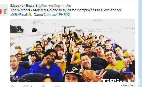 NBA 时间:2015-06-10 14:46来源:未知编辑:初尘【导读】北京时间6月10日消息 NBA总决赛结束在奥克兰的前两场比赛后,今日将移师克里夫兰进行第三场比赛。不过为了尽可能的给勇士球员提供主场般的氛围,勇士老板拉科布包专机将所有雇员运送到了克里夫兰,他们将会在骑士主场成为勇士最忠实的支持者。