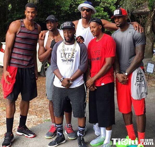 热火三巨头训练后合影 詹姆斯与前队友再相聚