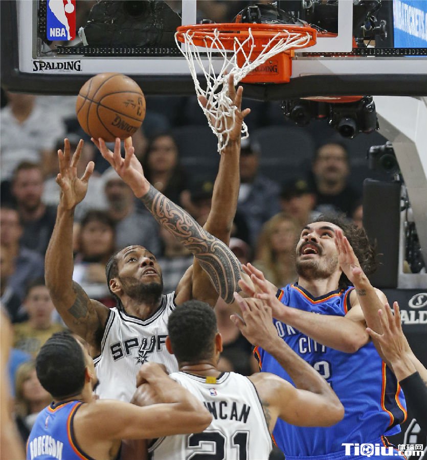 雷霆与马刺激烈对碰出火花 亚当斯绊倒格林撞到杜兰特