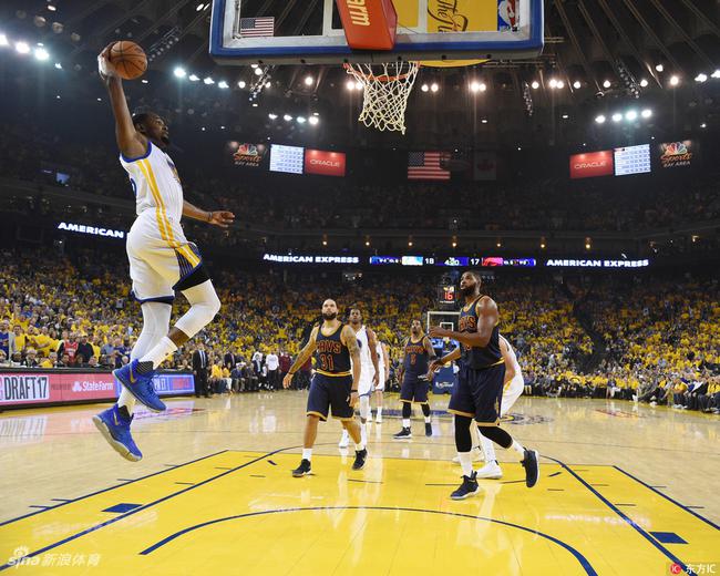 NBA 时间:2017-06-02 14:24来源:新浪编辑:MR.朱杜兰特穿勇士球衣终胜詹皇 38+8+8阿杜真大腿