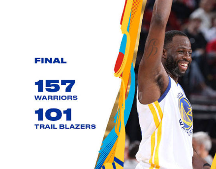 勇士157-101击败开拓者 詹姆斯36+6+6邓恩26+10+8